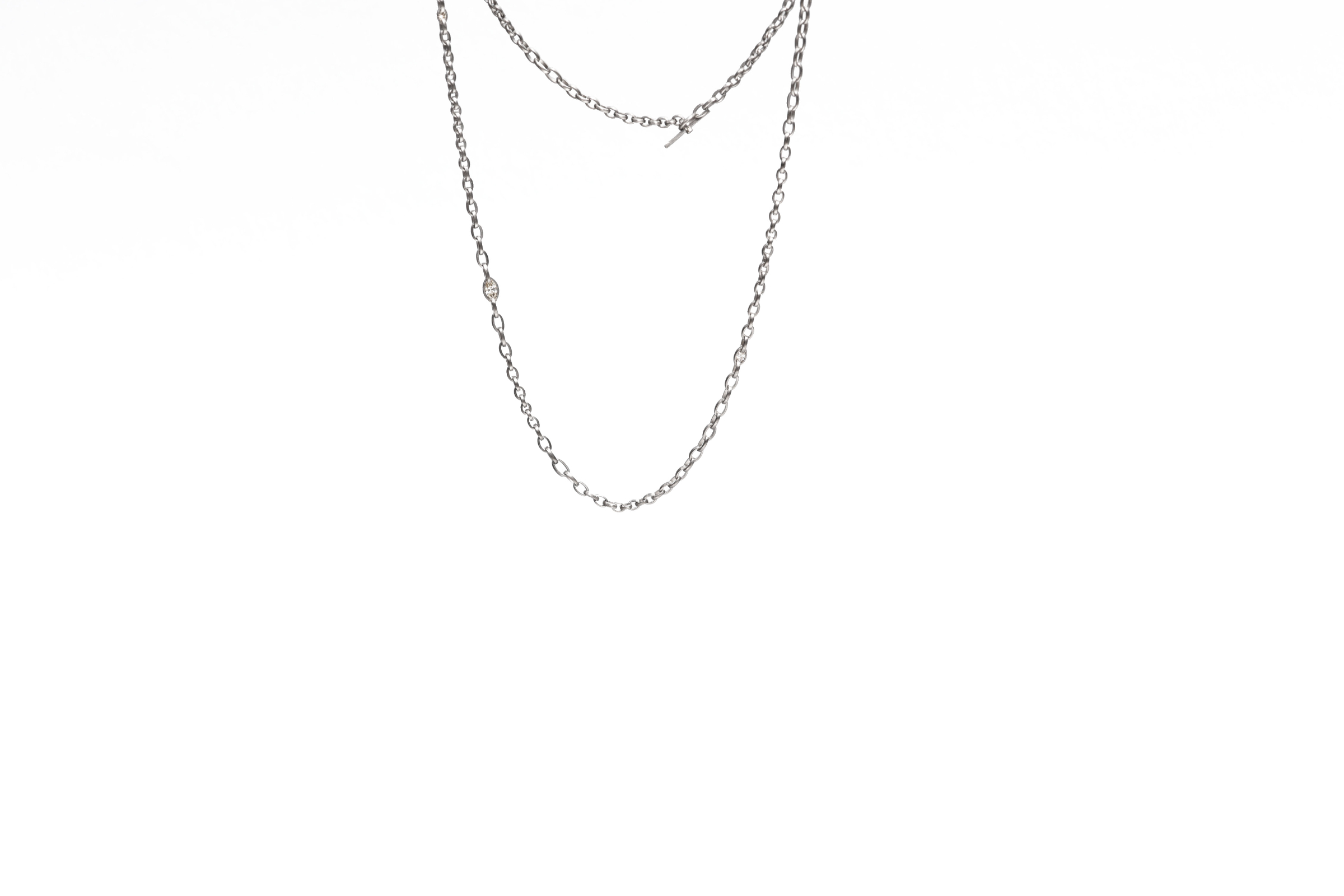 Diese Kette könnte es schon vor 2000 Jahren gegeben haben im Alten Rom, im antiken Griechenland oder in Persien. Sie ist der Inbegriff eines Klassikers. Für unsere Version haben wir kleine, kompakte Goldösen mit längeren, gestreckten Ösen zusammen gefügt. Jede Öse ist einzeln von Hand gefertigt. Es entsteht eine spannungsvolle Abwechslung aus gedrungenen und offenen Partien. Für ein zurückhaltendes Glitzern haben wir zusätzlich einige navettförmige Diamanten eingearbeitet.